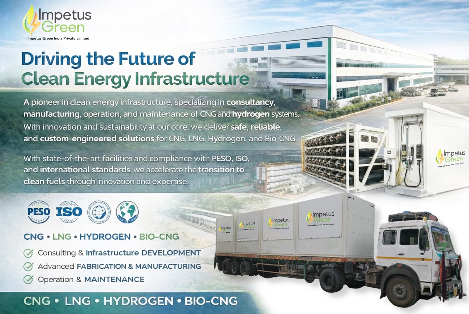 At Impetus Green India Pvt. Ltd., we are committed to building the future of clean and sustainable energy. As a leading provider of innovative solutions, we specialize in the consultancy, manufacturing, operations, and maintenance of CNG and hydrogen infrastructure, delivering end-to-end support across the entire energy value chain.